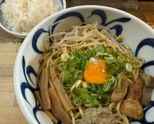 メニューはこってり派に人気の「特豚そば」をはじめ、野菜や脂、味の濃さを自分好みに調整できる「豚そば」、ジャンキーな味わいが評判の「豚まぜそば」、鶏・豚と魚介の旨みを合わせたバランスのよい「中華そば」などバリエーション豊富です。極太麺でガツンといきたい日も、あっさり中華そばでほっとしたい日もどちらにも応えてくれるラインナップで、唐揚げやごはんものを合わせれば満足感の高い一食になります。