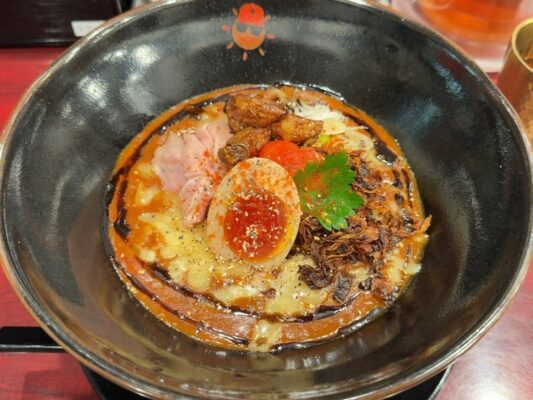 茨木市三島町にある「カレーとラーメン専門店 スパイスで笑顔に 総持寺本店」は、カレーとラーメンを絶妙に組み合わせた独創的な一杯が楽しめる、地元でも人気の高いお店です。看板メニューの「熟成トマトカレーラーメン」は、京都棣鄂の平打ち中太麺を使用しており、もちもちの食感としっかりしたコシが特徴。濃厚なカレースープとチーズのまろやかさが絶妙に絡み、一口すするとスパイスの香りとトマトの旨味が口いっぱいに広がります。店内は温かみのあるカジュアルな雰囲気で、ランチやディナーはもちろん、家族連れや友人同士でもゆったりと食事を楽しめます。テイクアウトや宅配にも対応しており、自宅でもお店の味を楽しめるのも魅力です。初めて訪れる方はもちろん、リピーターも多く、何度でも足を運びたくなるような、茨木ならではの新感覚ラーメン体験が待っています。スパイスの刺激と旨味、モチモチ麺の食感が絶妙に調和した一杯は、食べるたびに笑顔がこぼれる、まさに特別な時間を提供してくれる名店です。