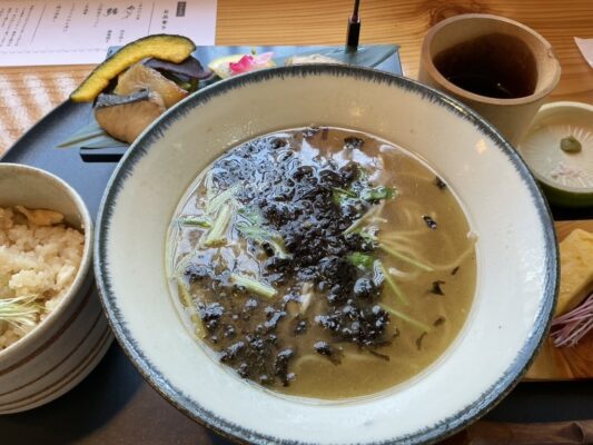 雲南市加茂町にある「多納屋 さぶろく」は、泡系の鶏白湯ラーメンが楽しめる人気店です。島根では珍しい泡立ったクリーミーな鶏白湯スープは、まろやかでコクがありながら後味はすっきり。鶏の旨味がギュッと凝縮されたスープは、一度食べたら忘れられない味わいです。さらに注目したいのが、雲南名産の焼きさばを混ぜ込んだ「焼さば混ぜごはん」。他のラーメン店ではなかなかお目にかかれない一品で、ラーメンとの相性も抜群です。地元の食材を活かしたメニュー構成は、雲南市ならではの魅力。モチモチとした自家製麺もスープとよく絡み、最後まで美味しく食べられます。ランチタイムのみの営業ですが、わざわざ訪れる価値のある一杯が待っています。
