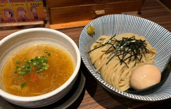 店名にもなっている淡麗塩つけ麺は、透き通ったつけ汁とコシのあるモチモチの太麺が絶妙にマッチする一杯。添えられた柚子胡椒で味変を楽しんだり、〆に割りスープとあられを加えて最後まで堪能できます。そのほか宗田かつおなどを独自配合した濃厚魚介つけ麺や、富山発祥のブラック中華そば、鶏塩ラーメンなどバリエーションも豊富です。麺を食べ終えたあとにサービスのご飯をお願いできるのもうれしいポイント。平日は深夜3時まで営業しているので、遅い時間のラーメンにもおすすめです。
