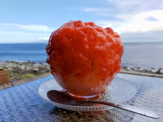 海の目の前にある「キッチン ZEN」は、旬の食材を活かした和定食とフォトジェニックなかき氷が自慢のお店です。伊豆稲取駅から海沿いを徒歩10分の場所に位置し、全席オーシャンビューの開放的な店内が魅力です。地元・伊豆の地下水から作る大石氷を使用したかき氷は、ふんわりとした口当たりながら溶けにくいのが特徴で、伊豆で収穫された赤いキウイやレアチーズ、南京を使ったかき氷など、季節ごとに旬のフルーツを使ったオリジナルメニューが並びます。10月から6月は、魚のフライの定食など和食ベースの食事メニューも登場し、サラダや小鉢もついてボリューム満点です。7月から9月はかき氷のみの営業となります。テラス席はペット同伴可能で、夜の部は店内もペット同伴可能です。SNSや口コミで人気が広がる話題のお店です。