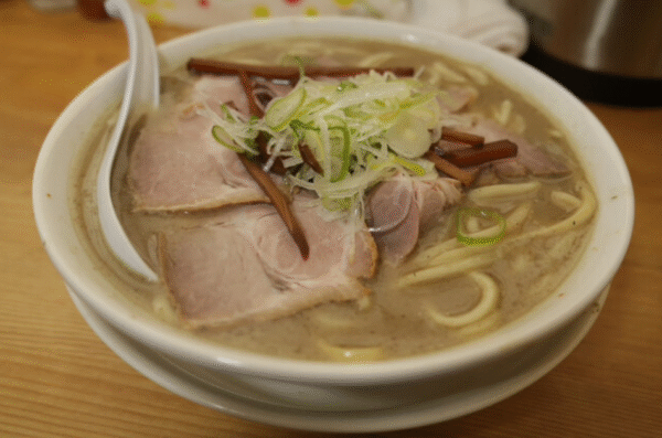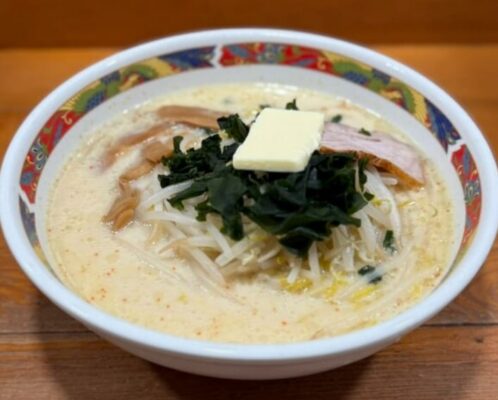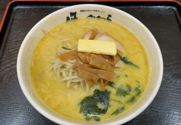 看板メニューの「味噌カレー牛乳ラーメン」は、味噌のコクとカレーのスパイス、牛乳のまろやかさが絶妙に調和した青森市民のソウルフード。札幌ラーメンらしい黄色の中太ちぢれ麺がスープによく絡み、卓上のニンニクや生姜を加えればさらに深みが増すと常連から支持されています。青森空港にも出店しているので、旅の締めくくりにもおすすめです。