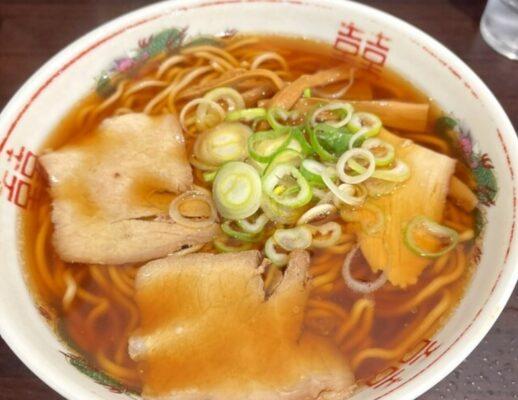 メニューは醤油ラーメンの「中」と「大」のみという潔さが特徴で、注文時に「大?中?」と聞かれるスタイルも常連には馴染み深い光景です。津軽煮干しラーメンのあっさり系を代表する一杯で、煮干しのエグみや苦味がほとんどなく、ほのかな酸味が食欲をそそります。かん水を使わない自家製の中太麺はモチモチとした食感で、うどんにも似た独特の噛みごたえが楽しめます。青森観光の合間に、津軽の味を気軽に味わいたいときにぴったりのお店です。