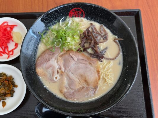 久居で本格的な博多とんこつラーメンを味わうなら、博多らーめん 博多一丁は外せません。1日120杯限定という希少性も相まって、平日でも昼営業で完売してしまうほどの超人気店です。白濁したクリーミーなとんこつスープは、長時間煮込んだ豚骨の旨みがぎゅっと凝縮されており、臭みは一切なく口当たりは驚くほどまろやか。細麺との相性も抜群で、替え玉文化もしっかり楽しめます。本場博多での平均レベルを再現した味わいは、三重県で1・2を争うレベルとも評されています。チャーシューは3枚乗って850円というコストパフォーマンスの良さも魅力。開店前から行列ができることも多いため、確実に食べたい方は開店30分前には到着しておくのがおすすめです。店員さんの接客も気持ち良く、入店時から帰るまで心地よい時間を過ごせる久居の誇る名店です。