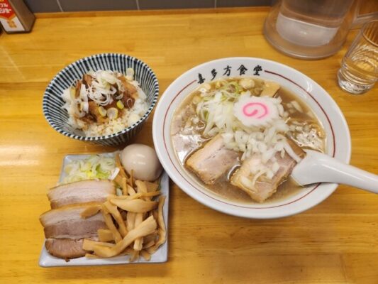 喜多方食堂 磯崎は、東京にいながら本場・福島県喜多方の味を楽しめるラーメン店です。喜多方ラーメンの特徴である、あっさりとしながらも奥深いスープと、食べ応えのある麺を大切にしており、ラーメン好きから高い支持を集めています。落ち着いた店構えで、初めて訪れる人でも入りやすい雰囲気が魅力です。優しい口当たりながら、しっかりとコクがあり、最後まで飲み干したくなる味わいです。麺は喜多方ラーメンらしい平打ちのちぢれ麺で、スープとの絡みが良く、もちもちとした食感が楽しめます。チャーシューやネギなどの具材も丁寧に仕上げられており、全体のバランスが非常に良い一杯です。店内はシンプルで清潔感があり、一人での利用やランチにも最適。都内で本格的な喜多方ラーメンを味わいたい方にとって、貴重な存在のお店です。