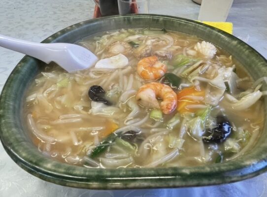 創業40年を超える、斑鳩町で地元の人々に愛され続けている町中華の人気店です。昼夜問わず行列が絶えることが多く、開店前から並んで待つお客さんもいるほどの人気ぶりです。人気の秘密はボリューム満点のメニューと手頃な価格。特に「チャンポン」はボリューム満点で、エビ・イカ・豚・ホタテなど具材もたっぷり入っています。酢豚定食にはエビマヨと鶏の唐揚げもセットになっており、複数の料理を楽しめるのも魅力です。四川麻婆豆腐やきそばなど中華メニューも充実しており、単品でもボリュームがある料理が多いため、持ち帰り用のパックも用意されています。法隆寺から車で10分弱の立地で、観光の合間にも立ち寄りやすいお店です。