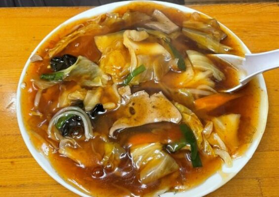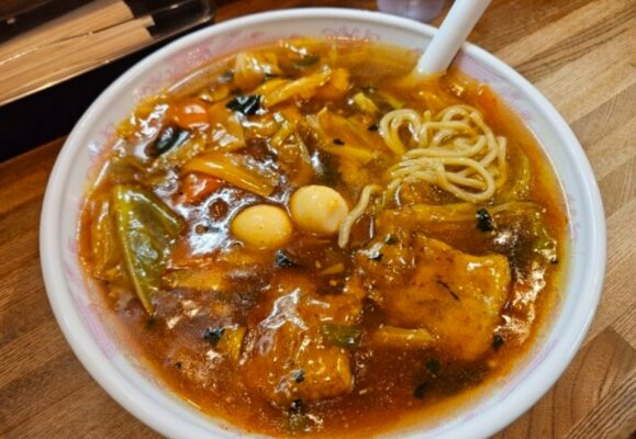 名物のスタミナラーメンは、太麺に甘辛いあんをたっぷり絡めた一杯です。レバーや野菜、うずらの卵がごろごろ入っていて、ボリュームも満点です。冷たい麺に熱々のあんをかけたスタミナ冷やしや、マーボー冷やしも人気で、がっつり食べたい日や、ひたちなかのローカルなラーメン文化を体験したい観光客にもおすすめです。