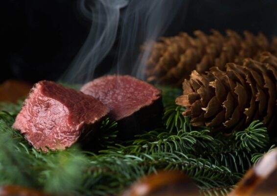 コース仕立てのディナーでは、北海道産の野菜や魚介、エゾ鹿や美瑛豚などを使った一皿が次々と登場します。毛蟹のリゾットや季節野菜を主役にした前菜、香ばしく焼き上げた肉料理に、最後は繊細なデセールまで、ニセコの自然を映した味わいをじっくり堪能できます。静かなダイニングでワインとともにゆっくり過ごすニセコディナーや、記念日の食事、旅のハイライトに特別感のある一夜を演出したい方におすすめです。