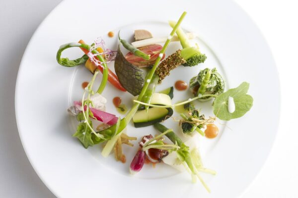 料理は、自家菜園や近隣農家の野菜、道産の肉や魚を生かしたフレンチコースが中心。前菜の色鮮やかなサラダや、その時期いちばんおいしい野菜を主役にした温菜、道産豚やジビエのメインなど、皿ごとに土地の恵みを感じられます。ニセコエリアで特別なディナーを楽しみたい記念日や、大切な人との旅のハイライトに選びたい一軒です。静かなロケーションでコースをゆっくり味わいたい大人のニセコディナーにぴったりです。
