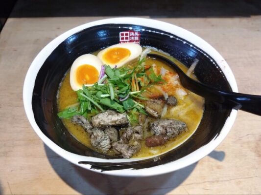 箕面市坊島にある田村家箕面店は、鶏の炭火焼きをラーメンに融合させた、全国的にも珍しい独創的な一杯を楽しめるお店です。運ばれてきた瞬間、炭火で焼かれた鶏の香ばしい香りが立ち上り、一気に食欲をそそられます。鶏の旨みがたっぷりと溶け出したスープに、香ばしい鶏肉が加わることで、他のどのお店とも違う深い味わいを生み出しています。店内はモダンで落ち着いた雰囲気があり、夜にはお酒と一緒に鶏料理を楽しむ居酒屋的な利用も可能です。場所は箕面市立病院からも近く、大通り沿いにあるため見つけやすいのもポイント。一度食べると、その独特の香ばしさと旨みの虜になるリピーターが続出しています。普通のラーメンでは満足できない、新しい味覚の体験を求めている方にぜひ訪れてほしい名店です。