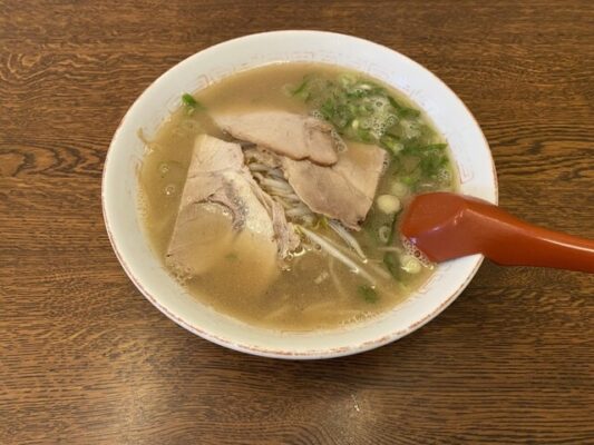 下松市にある中華そば紅蘭は、山口県が誇るご当地グルメ「下松牛骨ラーメン」の代名詞とも言える超有名店です。こちらのラーメンは、牛骨のみをじっくりと炊き上げたスープが最大の特徴。一口飲めば、牛ならではの独特の甘みと深いコクが口いっぱいに広がります。中細のストレート麺との相性も抜群で、トッピングのチャーシューやもやしがスープの美味しさをより一層引き立ててくれます。下松駅から徒歩圏内にあり、県内外から多くのファンが訪れるため行列ができることも珍しくありません。店内は活気に満ちており、受け継がれてきた伝統の味を守り続ける職人のこだわりが感じられます。山口東部を観光する際には、まず立ち寄ってほしい名店です。お稲荷さんと一緒にいただくのが地元流のスタイル。唯一無二の牛骨スープを堪能しに、ぜひ足を運んでみてください。