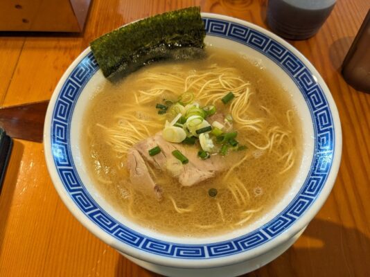 山武市成東にある本格博多ラーメンと焼肉が楽しめるハイブリッドなお店です。福岡出身の店主が人気店「なんでんかんでん」と焼肉店で経験を積み、千葉で20年以上にわたり真っ直ぐな豚骨ラーメンを作り続けています。しっかりと乳化した豚骨スープは骨味も油分も蓄えたフルボディながら、臭みやしつこさがなく食べやすいのが特徴です。福岡青木食産の低加水細ストレート麺はザクっとした食感が心地よく、豚骨スープとの相性も抜群です。テーブル席にはガスコンロが設置されており、夜には焼肉も楽しめます。麺の硬さはバリカタでの注文も可能で、本場の味を忠実に再現した一杯は九十九里エリアでも屈指のハイレベルな豚骨ラーメンとして地元で愛され続けています。