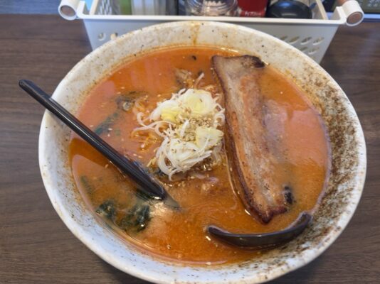 音更町に創業30年近くの歴史を持つ、地元で愛される老舗ラーメン店。国道241号線沿いの黄色いテントが目印で、豚骨スープと昆布・野菜スープの2種類をブレンドしたスープが特徴です。「みそラーメン」は野菜たっぷりでボリューム満点。裏メニューとして「純連風ラーメン」も提供されており、濃厚な味噌味に紅生姜がアクセント。通し営業なので、ランチの時間を気にせずゆったりと訪れることができます。小上がり席もあり、子ども連れの家族にも優しいお店です。