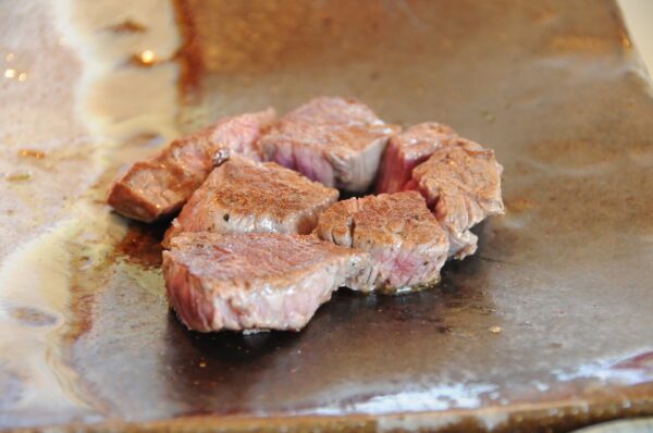 伊万里で人気のステーキハウスといえば、この老舗店が筆頭に挙げられます。コンクリート打ち放しのギャラリーのような洗練された店内で、目の前の鉄板で焼き上げられる伊万里牛のステーキを楽しめます。独自の米ぬかが入った塩こしょう、ゴマだれ、ポン酢など、複数のソースで味わえるのが特徴です。カウンター席では、シェフの華麗な調理パフォーマンスを間近で見ることができ、炎が上がる演出も魅力的です。和牛ロースやヒレのコースでは、海老や野菜も一緒に焼き上げられ、ボリューム満点のディナーが堪能できます。伊万里駅から車で約6分とアクセスも良好で、地元でも定評のある人気店です。