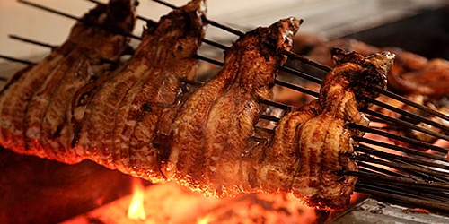 JR黒崎駅から徒歩約3分、黒崎4丁目にある鰻料理の専門店です。数寄屋建築をモダンにアレンジした店内は、照明を少し落とした落ち着いた雰囲気で、格調高い弦楽四重奏が流れています。1926年創業の老舗で、北九州の鰻ランキングでは常に上位に位置する人気店です。外はカリッと、中はふんわりとした蒲焼きは、余分な脂を落とし甘さ控えめのタレで仕上げられています。名物のせいろ蒸しは、鰻と一緒に蒸したご飯が鰻の風味と旨味を吸収し、ふっくらと仕上がります。家族のお祝いごとや特別な日のディナーにぴったりで、隣接する提携駐車場は1時間無料です。平日のみ席数限定で予約可能ですが、7~8月は予約不可となっています。
