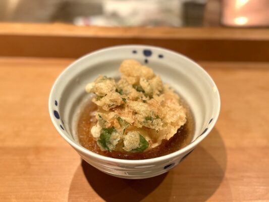 JR黒崎駅から徒歩約5分、銀映ビル1階にある天ぷら専門店です。天ぷら百名店2023にも選出され、2019年にはミシュランにも掲載された実力店です。天ぷらには太白胡麻油100%を使用し、サラッと軽く揚げられた天ぷらは重くなく、何品でも食べられるあっさりとした仕上がりが特徴です。店内はカウンター席と小上がり席があり、カウンターでは揚げたての天ぷらを目の前で楽しめます。おすすめは4,000円のコースで、小鉢、お造り、天ぷら10品、天茶がセットになっており、リーズナブルな価格で本格的な天ぷらを堪能できます。ビールや日本酒と一緒に、揚げたてを一品ずつゆっくり味わうディナータイムは至福のひとときです。