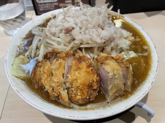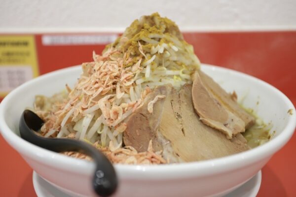 上本町でガッツリとした「二郎系」を堪能したいなら、BUTAKIN(ブタキン)が正解です。こちらの特徴は、なんといってもその圧倒的なボリュームと力強いスープ。山盛りのヤサイ、ニンニク、背脂、そして分厚い豚(チャーシュー)が鎮座する一杯は、見た目からして圧巻です。濃厚な醤油スープとワシワシとした食感の極太麺が絡み合い、食べ進めるごとにエネルギーが漲ってくるような中毒性があります。トッピングの量をお好みでコールできるスタイルは、自分だけの一杯を作り上げる楽しみもあります。店内は二郎系らしく活気があり、ガッツリ食べてパワーをつけたいという客層で常に賑わっています。地下鉄谷町九丁目駅からも近く、アクセスの良さも抜群。お腹を最大限に空かせて、上本町の「豚の王」に挑んでみてはいかがでしょうか。旅の途中のエネルギー補給として、これ以上ない満足感を得られるはずです。