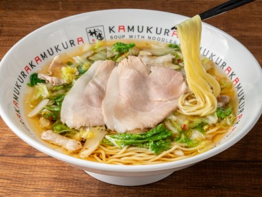 大阪・道頓堀発祥のどうとんぼり神座(かむくら)は、一度食べたら忘れられない唯一無二のスープが自慢です。コンソメのような甘みを感じる透き通ったスープには、たっぷりの白菜と豚肉の旨味が溶け込んでおり、野菜の自然な甘みが際立つヘルシーな味わい。フレンチシェフが開発したという秘伝のレシピは、まさに「おいしいラーメン」というメニュー名にふさわしい独創性を持っています。京都ポルタ店は地下鉄烏丸線からも近く、移動の合間に立ち寄るのに最適。店内は広々としており、清潔感にあふれているため、家族連れでもゆったりと食事を楽しめます。卓上のニラを途中で加えて、自分好みのパンチの効いた味に味変するのもおすすめ。烏丸の地下で、たっぷり野菜の旨味が詰まった黄金色のスープに癒やされてください。