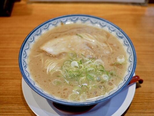 福岡市の玄関口、博多駅から徒歩圏内にある博多一双は、若き店主兄弟が作り上げた「豚骨カプチーノ」と呼ばれる泡立つスープが最大の特徴です。丼を覆い尽くすきめ細やかな泡は、スープがしっかりと乳化し、旨味が最大限に引き出されている証拠。濃厚でありながら後味はすっきりとしており、特注の細打ち平麺がスープをたっぷりと持ち上げてくれます。博多駅東本店は常に活気に溢れ、旅行客だけでなく地元のサラリーマンも行列を作る人気ぶりです。夜遅くまで営業しているため、福岡市での夕食や飲んだ後の締めの一杯としても重宝されています。スタイリッシュな店構えは、女性や家族連れでも入りやすい清潔感があります。博多を代表する新時代の濃厚豚骨を堪能するなら、まずはここを目指してください。