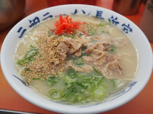 福岡市博多区の下呉服町にある博多元気一杯!!は、その圧倒的なスープの濃厚さで全国に名を轟かせる有名店です。看板がないことでも知られ、青いバケツが営業の合図というユニークなスタイルも話題を呼びました。こちらのスープは、もはやポタージュのような質感を持つ「クリーミー豚骨」の究極形。一口啜れば、豚骨の旨味だけを凝縮した濃厚な味わいが口いっぱいに広がります。かつては厳しいルールがあるお店として有名でしたが、現在は初めての方でも温かく迎えてくれる雰囲気です。ただし、味へのこだわりは今も昔も変わりません。カレールーをトッピングした独自の味変も人気で、一杯で二度美味しい体験ができます。福岡市の中心街から少し離れた場所にありますが、その唯一無二の濃厚スープを求めて訪れる価値は十分にあります。
