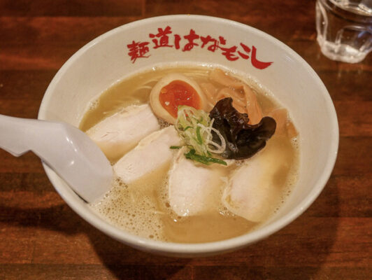 福岡市中央区の薬院エリアに佇む麺道はなもこしは、多くのラーメンファンや評論家を唸らせる実力派のお店です。こちらの自慢は、一般的な豚骨ではなく、鶏の旨味を極限まで引き出した「鶏そば」にあります。濃厚でありながらも驚くほど上品で滑らかな口当たりのスープは、一口飲めば素材の良さがストレートに伝わります。店主がこだわり抜いた自家製麺は、スープとの一体感が素晴らしく、まさに芸術的な一杯です。薬院というお洒落な街並みに溶け込む落ち着いた雰囲気の店内は、じっくりと味を堪能したい方にぴったりです。ランチタイムには行列ができることも多く、福岡市の中心部から少し足を延ばしてでも食べる価値のある名店として知られています。従来の福岡ラーメンのイメージを覆すような、洗練された鶏白湯の世界を体験したいなら、ここは絶対に外せません。