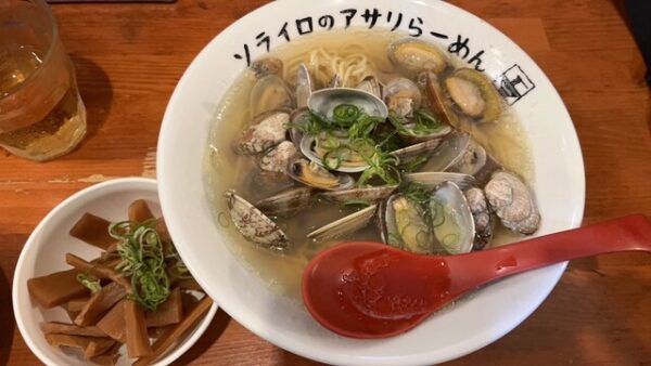高知市追手筋に位置するソライロは、貝出汁ラーメンの魅力を存分に引き出した「アサリらーめん」で注目を集めるお店です。器を覆うほどたっぷりのアサリが盛り付けられ、そこから染み出た深い旨味と醤油のコクが絶妙にマッチします。スープの最後の一滴まで貝の旨味が凝縮されており、魚介系ラーメンがお好きな方にはたまらない一杯。見た目もスタイリッシュで、現代的な感性が光る店舗です。夜遅くまで営業しているため、締めの一杯としても非常に人気があります。店内は落ち着いたバーのような雰囲気もあり、大人の締めラーメンを楽しみたい方にぴったり。高知市の中心部で、素材の力をストレートに感じる洗練された一杯を堪能してください。アサリの豊かな香りと共に過ごす時間は、高知の夜を特別なものにしてくれるでしょう。