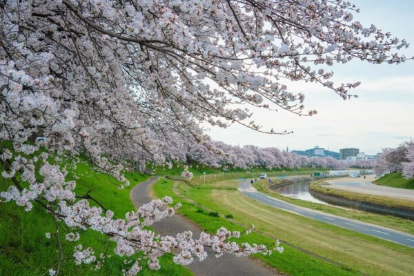 岡山市中区にある旭川さくらみちは、春になると旭川沿いに咲く桜が川面に映り込み、昼間も夜も美しい景観を楽しめる人気の花見スポットです。例年3月下旬から4月上旬に見頃を迎え、満開の桜が川沿いに連なり、歩道や遊歩道からゆったりと花見散策ができます。桜祭り期間中はライトアップや屋台も登場し、夜には幻想的な夜桜が楽しめるため、家族連れやカップル、写真愛好家に特に人気です。また、川沿いを散策しながら桜を鑑賞できるため、春の穏やかな空気と共にリラックスしたひとときを過ごせます。昼間の桜と旭川の清流、夜のライトアップと、時間帯によって異なる表情を見せる風景は写真映えも抜群。市内中心部からのアクセスも良く、公共交通機関や車で気軽に訪れることができるのも魅力です。桜並木の下を歩きながら春の訪れを感じられ、岡山市中区の春の定番スポットとして多くの人々に親しまれています。
