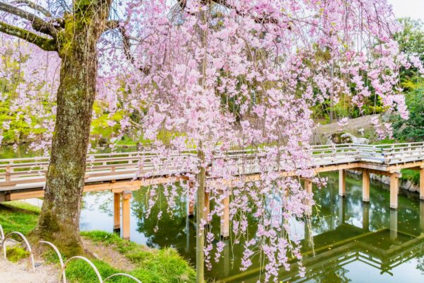 日本三名園として知られる岡山後楽園は、園内にソメイヨシノを中心とした約50本の桜林が広がる絶景スポットです。南門の桜は芝生や滝のように連なる姿が圧巻で、ゆったりと散策しながら花見を楽しめます。4月上旬から中旬には八重紅枝垂も見頃を迎え、桜のじゅうたんや栄唱橋周辺の美しい景色は、春の訪れを感じさせます。江戸時代を代表する回遊式大名庭園として整備され、1952年には特別名勝に指定されており、歴史と自然の調和を満喫できるスポットです。園内には岡山の桜開花の標本木もあり、季節の移ろいを間近に感じられるのも魅力です。