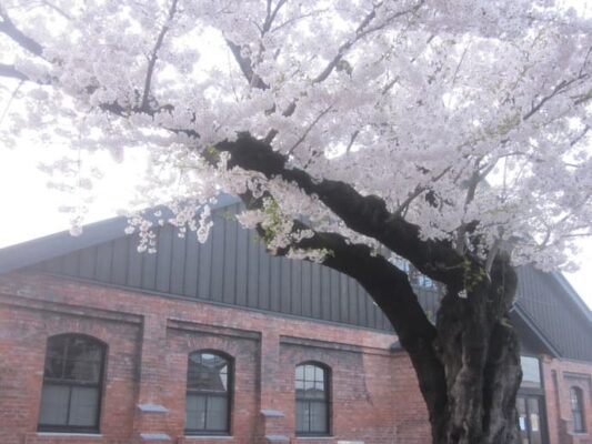 正門脇には左右に1本ずつ桜が植えられており、春になるとレンガの建物と淡い桜色の美しいコントラストを楽しめます。本数は多くありませんが、その分落ち着いた雰囲気の中で、建物と桜が織りなす景観をじっくり味わえるのが魅力です。人混みを避けて静かに桜を眺めたい方や、写真撮影を楽しみたい方にもおすすめの、盛岡ならではの隠れた桜スポットです。