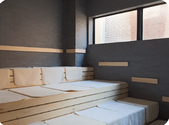 サウナは薪ストーブでセルフロウリュができ、やわらかい熱がじんわり広がります。水風呂は一人用が複数あり、混みにくいのが嬉しいところ。屋根付きの外気浴に畳スペースもあり、寝転んで深呼吸すると松本の澄んだ空気がすっと入ってきます。貸切なので子連れでも周りに気を遣いにくく、仲間とマイペースにサウナを楽しみたい方におすすめです。