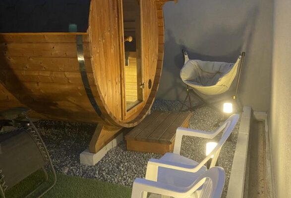 敷地内には樽型のサウナと水風呂、外気浴スペースがコンパクトにまとまっており、セルフロウリュでしっかり発汗したあと、外のチェアで風にあたりながらクールダウンできます。タオルやアメニティもそろっていて、手ぶら利用がしやすいのも魅力。カップルや友人同士で気兼ねなく楽しみたい方、一般的な大浴場ではなく落ち着いた環境で集中してサウナに入りたい倉敷のサウナ好きにぴったりの一軒です。