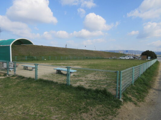 和歌山市湊の紀の川河川敷にある、24時間無料で利用できる公営ドッグランです。大型・中型犬用と小型犬用の2エリアに分かれており、どちらも広々とした天然芝のスペースで、愛犬が思い切り走り回れます。開放感あふれる河川敷の立地で、土手沿いに広がる景色や夕陽も美しく、1日中のびのび遊べる環境です。屋根付きの休憩スペースやベンチも完備され、飼い主さんもゆったり過ごせます。駐車場は約20台分あり、簡易トイレも設置されています。春には桜並木が美しく、花見スポットとしても人気です。給水施設はないため、愛犬の飲み水は持参が必要ですが、無料で24時間利用できるアクセスの良さから、地元の方はもちろん大阪など他府県からも多くの愛犬家が訪れる人気スポットです。