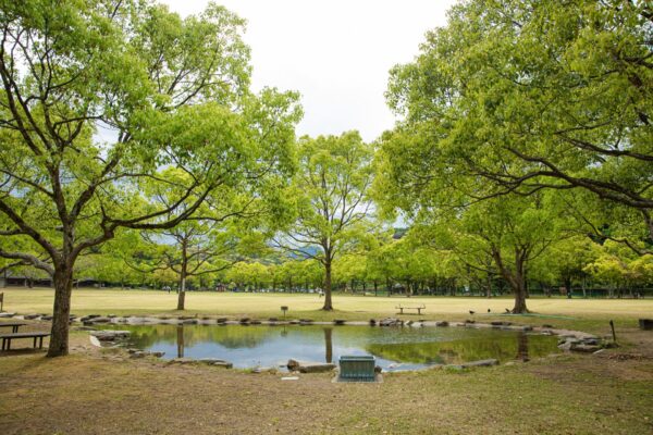 北九州市小倉北区にある山田緑地は、広大な敷地を持つ都市公園で、園内には人工の川が整備されています。山田緑地は北九州市内最大級の緑地公園で、豊かな自然と充実した施設が魅力。園内を流れる人工の川は、夏場に子どもたちが水遊びを楽しむ人気スポットとして北九州のファミリーに親しまれています。山田緑地の人工川は浅く安全に設計されており、幼児でも安心して遊べる環境。水質管理も行き届いており、清潔で快適に遊べる北九州の水遊びスポットです。園内には芝生広場や遊具、森林散策路なども充実しており、一日中楽しめる環境が整っています。トイレや駐車場も複数箇所に完備されており、北九州市街地からのアクセスも良好。周辺は緑豊かで、四季折々の自然を感じながら過ごせます。都市公園ならではの充実した設備と自然が調和した、北九州を代表する水遊びスポットです。