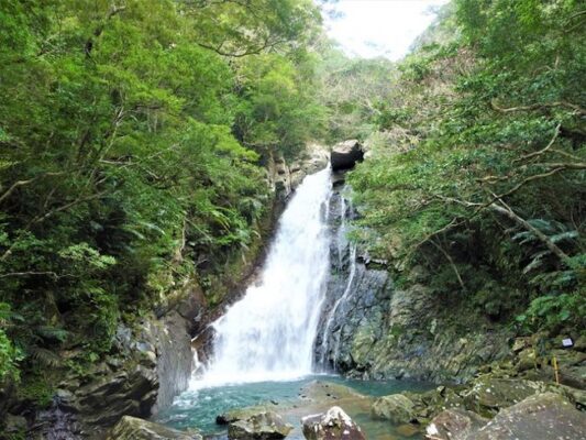 沖縄県国頭郡国頭村にある比地大滝は、沖縄本島最大級の滝として知られる川遊びスポットです。比地大滝は落差約26メートルを誇り、やんばるの深い森の中に位置する沖縄屈指の名瀑。滝までは約1.5キロメートルのトレッキングコースが整備されており、沖縄の亜熱帯の森を散策しながら滝を目指す冒険が楽しめます。比地大滝への道中には清流が流れており、川沿いを歩きながら沖縄特有の動植物を観察できるのが魅力。滝壺周辺では水遊びや川遊びも楽しめ、マイナスイオンをたっぷり浴びながら涼むことができます。比地大滝の水は透明度が高く、滝壺の深い青緑色は神秘的な美しさ。トレッキングコースは比較的歩きやすく整備されていますが、小学生以上のお子様向けの沖縄スポットです。駐車場やキャンプ場も併設されており、宿泊しながら沖縄の自然を満喫することも可能。那覇市内から車で約2時間と距離はありますが、訪れる価値のある沖縄やんばるの絶景スポットです。