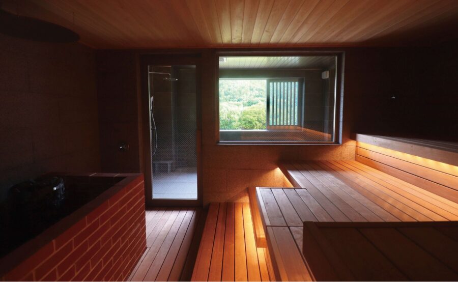 館内のサウナは25平米の広さで、定員はあえて15名まで。真ん中には愛嬌のある「ヌシ」が鎮座し、ゲリラオートロウリュとハーブの香りでじっくりととのえます。深めの水風呂や寝湯、山から吹き込む風を感じる休憩スペースも心地よく、ととのい後は同じビルのラウンジで一息つく楽しみ方もできます。大人はサウナ、子どもは近くの自然遊びという家族旅行のプランにも組み込みやすい一軒です。