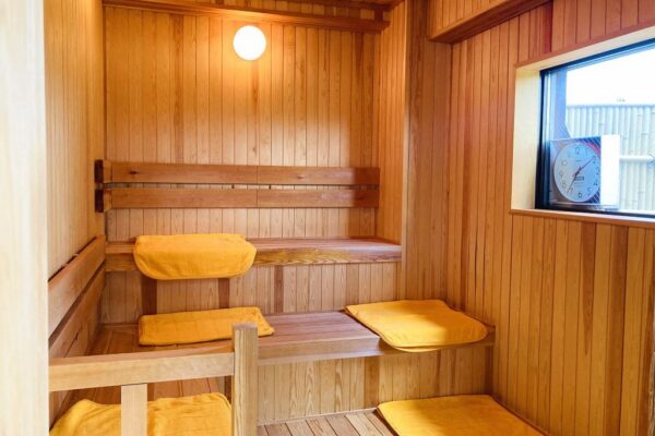 サウナ小屋は木のぬくもりに包まれた落ち着いた雰囲気で、窓の外に広がる田園風景を眺めながらゆっくりととのえます。外気浴スペースでは、澄んだ空気を感じながら椅子に腰かけてクールダウンでき、家族や友人と貸し切り感覚で過ごしやすいのもポイントです。小さな子ども連れなら滞在時間を短めに区切って利用するなど、無理のないペースで自然とサウナを一緒に楽しめるのも安心です。