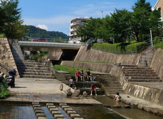 箕面市にある親水公園は、箕面川沿いに整備された市民に親しまれている川遊びスポットです。箕面の親水公園は川に近い環境で水遊びが楽しめるよう設計されており、夏場は子どもたちの水遊びの場として大人気。公園内は安全に配慮した設計になっており、小さなお子様でも安心して川遊びができる環境が整っています。箕面の親水公園の魅力は、市街地にありながら清流を身近に感じられること。川のせせらぎを聞きながらのんびり過ごせる箕面ならではの癒やし空間です。公園内には芝生エリアやベンチも整備されており、川遊びの合間にピクニックや読書を楽しむこともできます。トイレや駐車場も整備されており、気軽に訪れることができる箕面のスポット。周辺は緑豊かで、四季折々の自然を感じながら過ごせます。阪急箕面線の駅からもアクセスしやすく、箕面市内を観光しながら立ち寄れる便利な立地。ペット連れでの散策にも人気で、愛犬と一緒に箕面の水辺を楽しめる川遊びスポットです。