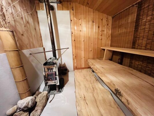 母屋を改装した館内には薪ストーブサウナが備わり、セルフロウリュでじっくり温まったあとテラスで外気浴を楽しめるのがポイント。1日1組限定の貸切なので、子連れファミリーもほかのゲストに気兼ねなく過ごせます。気の合う友人グループで料理を持ち寄り、語らいながらサウナと田舎時間を満喫したい人にぴったりの宿です。上田エリアでゆっくりととのいたい人にぜひ候補に入れておきたい一軒です。