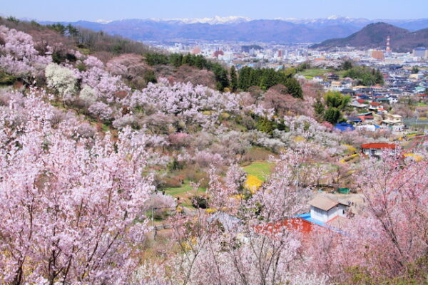 福島県福島市にある花見山は、「福島に桃源郷あり」と称される絶景の桜名所です。花木栽培農家が善意で開放しており、春になるとウメ、東海桜、彼岸桜、ソメイヨシノ、レンギョウ、ボケ、ハナモモなど約70種類の花々が一斉に咲き誇ります。頂上からは吾妻連峰と花々のコントラストが望め、散策するだけでまるで絵画の中にいるかのような感覚を味わえます。写真愛好家や観光客も多く訪れ、昼間の花見はもちろん、柔らかな光の中での撮影にも最適です。臨時直行バスやシャトルバスが運行されるためアクセスも便利で、家族連れやカップルにおすすめの春の観光スポットです。