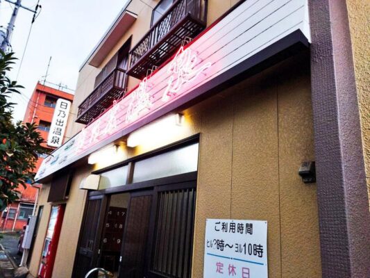 JR下関駅から歩いて約8分、下関漁港のそばにある「日乃出温泉」は、昭和30年創業の地元に愛され続ける銭湯です。唐戸市場でお昼を楽しんだあと、15時のオープンに合わせて立ち寄るのがちょうどいいルートになります。