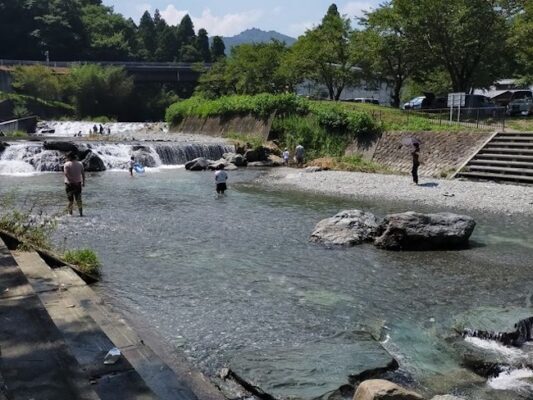 群馬県藤岡市にある小平河川公園は、三波川沿いの自然豊かな親水公園で、川遊びスポットとして人気があります。三波川の清らかな流れは浅い場所が多く、小さな子どもでも足を水に浸しながら遊べるので家族連れに好評です。川の中には小魚やサワガニが生息しており、自然観察をしながらの水遊びも楽しめます。水深は場所によって大人の腰ほどになるところもあるため、安全には注意しながら遊ぶのがおすすめです。園内には川遊びのほかに遊具や芝生広場、滑り台、ブランコ、無料のバーベキュー広場もあり、ピクニックやアウトドアの1日を過ごすのにも向いています。駐車場が無料で利用できるので、ドライブや夏のレジャーで立ち寄りやすい川遊びスポットです。