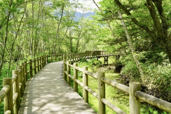 夏はイチョウバイカモやニッコウキスゲが池の周りを彩り、「田代湿原」ではサギスゲの群生やレンゲツツジのオレンジが目を楽しませてくれます。秋の黄葉や5月の新緑も見ごたえ十分。登山の装備がなくても歩きやすい靴があれば問題なく、小さなお子さん連れでも無理なく回れるコースです。上高地を初めて訪れる日に、まず足を運んでみてはいかがでしょうか。