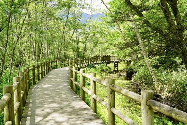 「明神」から「徳沢」へ続く奥上高地自然探勝道は、上高地の静けさをじっくり味わいたい方におすすめのコースです。片道約3.7km、所要約60分。森林のなかを行く平坦な道で、分岐もほぼなく迷う心配がありません。日帰りの登山やハイキングに慣れてきたら、ぜひ足を延ばしてみてください。