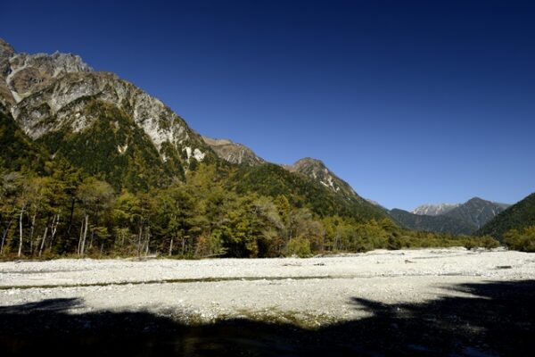 途中で小さな沢を三度ほど渡りますが、真夏でもひんやりとした空気が心地よく、涼しさを感じながら歩けます。「徳本峠小屋」では飲み物や軽食をとることもでき、穂高連峰を望む展望スポットは写真撮影にも人気。JR松本駅からバスで上高地バスターミナルまで約90分、そこから「明神」までは徒歩約1時間です。日帰りの登山で往復4時間ほどかかるため、午前中の早い時間に出発するのがおすすめです。