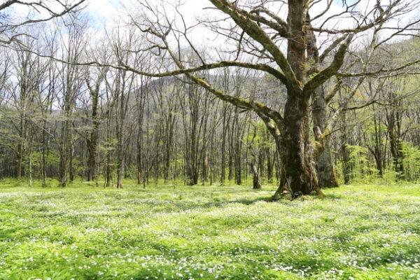 初夏にはニリンソウの大群落が道沿いに広がり、白い花が一面を埋め尽くす光景は圧巻です。途中には古池もあり、梓川の護岸沿いに出ると「徳沢」はもうすぐ。到着後は「徳澤園」で名物のソフトクリームをいただきながらひと休みするのが定番の過ごし方。広々とした草原でのんびりする時間も格別です。JR松本駅からバスで上高地バスターミナルまで約90分、そこから「河童橋」「明神」を経由して徒歩約2時間で到着します。穂高の山並みを眺めながら、奥上高地ならではの静かな山歩きを楽しめます。