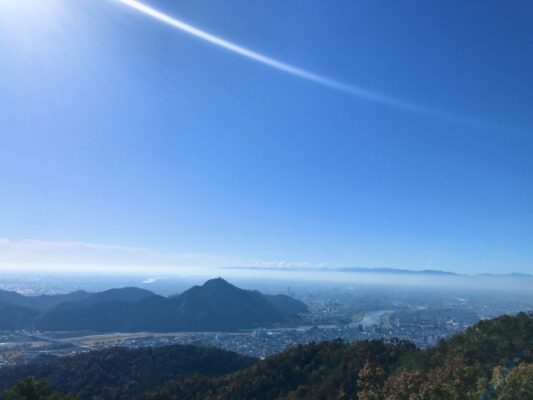 岐阜県各務原市と関市にまたがる「各務原アルプス」は、標高300〜380mの山々が東西約10kmにわたって連なる稜線ハイキングコース。名古屋から車で約1時間とアクセスがよく、雪がほとんど積もらないため一年を通して楽しめます。起点の「伊吹の滝」駐車場は無料で約20台駐車可能。「迫間不動尊」にも無料駐車場があり便利です。