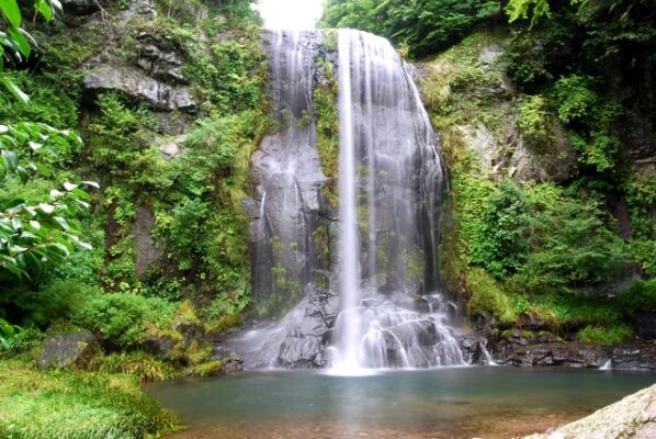 西原村にある落差約20メートルの滝で、別名「寄姫の滝」とも呼ばれ、熊本県平成の名水百選に選ばれています。木山川の支流、滝川にかかる滝で、四季を通じて水量が豊富です。流れ落ちる水は、まるで白い糸のように見え、まさに自然の芸術作品と呼ぶにふさわしい美しさです。滝の近くまで行けるため、マイナスイオンをたっぷり浴びて癒されることができます。夏には暑さをしのぐため多くの人が訪れ、涼を求める人たちのオアシスとなっています。少し下流へ行くと水遊びスポットになっており、水遊びする家族連れがたくさん訪れます。整備された遊歩道があり、滝の周囲は心地良い涼しさで満たされており、夏の暑い季節にぜひ訪れたいスポットです。パワースポットとしても注目されています。