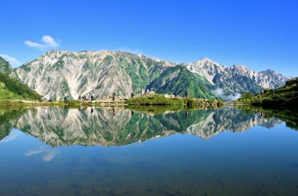 そこから白馬三山などの北アルプスを眺めながら歩くこと約1時間30分で八方池に到着します。池の水面に白馬連峰が映り込む景色は、一度見たら忘れられないほど印象的です。登山初心者や家族連れでも気軽に楽しめる整備されたコースで、白馬を代表するトレッキングスポットとして人気があります。夏の花々や秋の草紅葉など、季節ごとに表情が変わるのも見どころのひとつ。日帰りで本格的な北アルプスの雰囲気を体感できる場所として、ぜひ候補に加えてみてください。