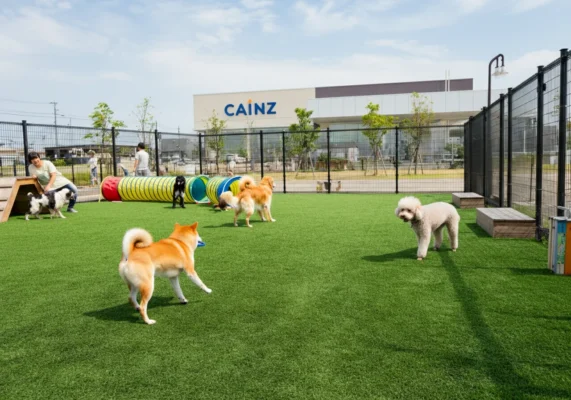 千葉県船橋市にある「カインズ船橋習志野店 ドッグラン」は、ホームセンター「カインズ」敷地内に併設された便利なドッグランです。お買い物のついでに気軽に立ち寄れるのが魅力で、愛犬のストレス発散や運動不足解消にもぴったり。小型犬エリアとフリーエリアに分かれているため、体格差のあるわんちゃん同士でも安心して遊ばせることができます。各エリアには屋根付きベンチや水飲み場、ゴミ箱が完備されており、飼い主も快適に過ごせる環境が整っています。カインズカード会員で、予防接種を受けていれば無料で利用可能。千葉エリアで気軽に利用できる身近なドッグランとして人気のスポットです。