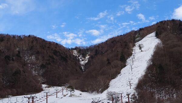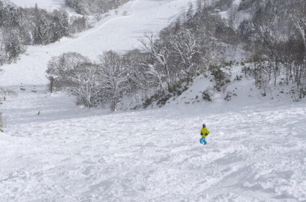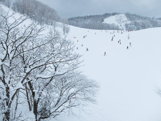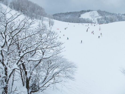 ゲレンデは標高差約550m、最長約2,500mの滑走ができ、トップ標高1,860mの天然雪を楽しみやすいのが魅力です。ペアリフト2基のシンプルな構成で、初級~上級まで滑れるコースバランスもあり、混雑を避けて滑りたい日やパウダー狙いの日にも使いやすいです。小回りのきく規模感で家族連れにも合い、滑った後はリフト券で「ひらゆの森」の温泉を利用できるので、半日~1日で気持ちよく過ごしたい人は、ぜひチェックしておきたい場所です。